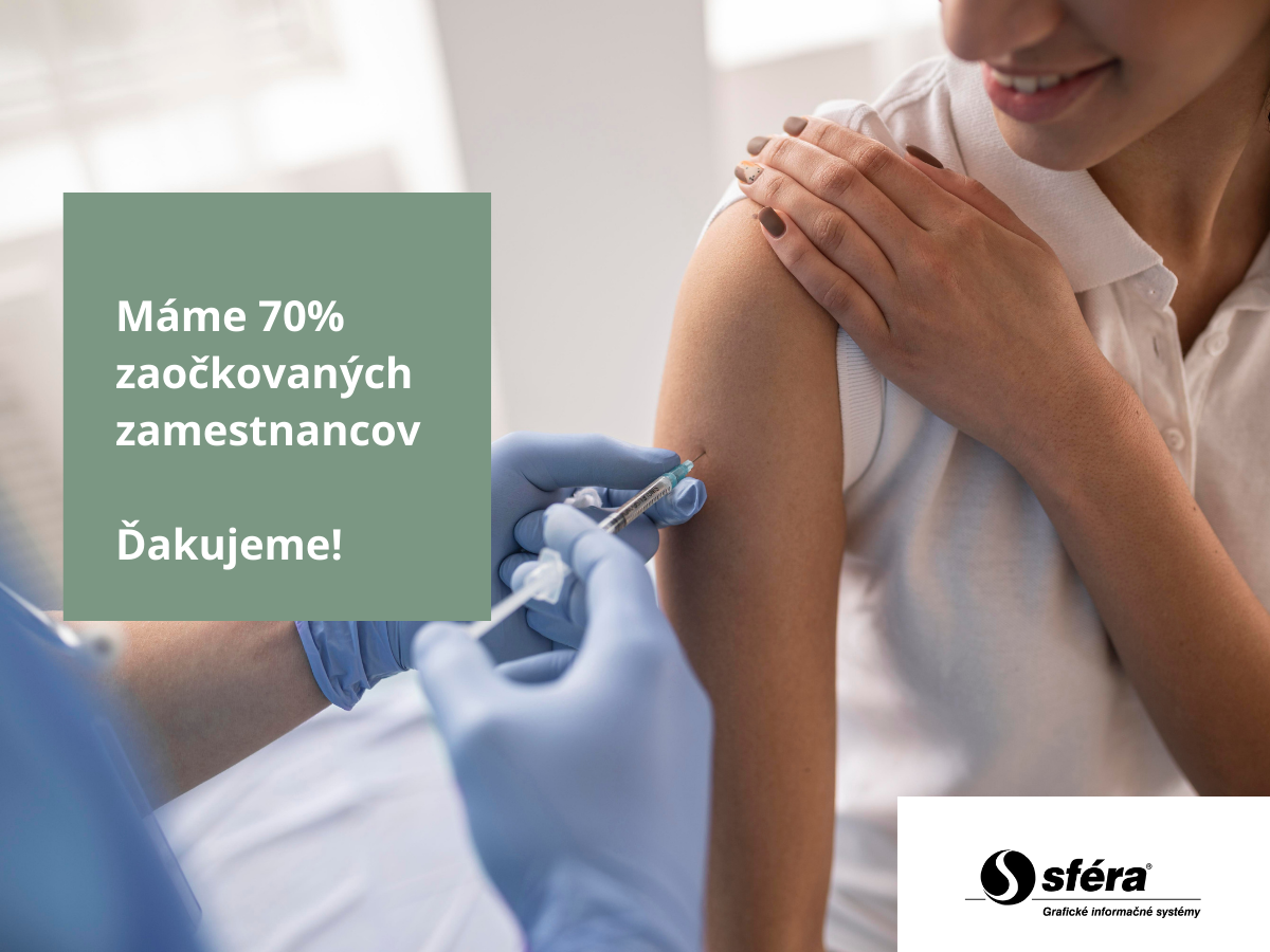 V spoločnosti SFÉRA, a.s., sa blížime sa k 70 % zaočkovaných (69,2 %).  Je to výsledok zodpovednosti zamestnancov a prejav jednoznačného postoja vedenia našej spoločnosti k vakcinácii.