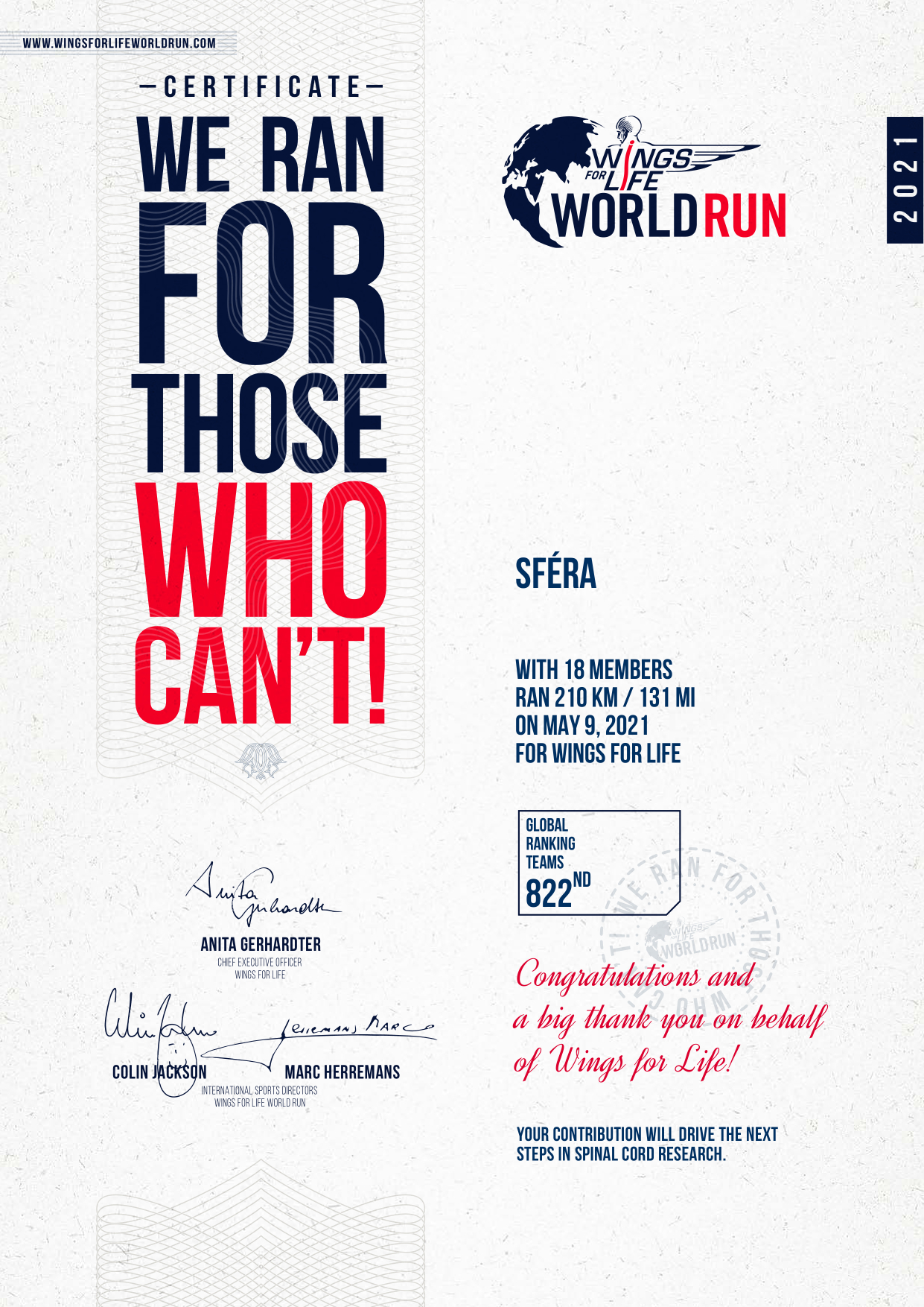 Aj tento rok sme sa pridali medzi 184.236 bežcov z celého sveta, aby sme prispeli registračným poplatkom na výskum liečby ochorenia miechy.